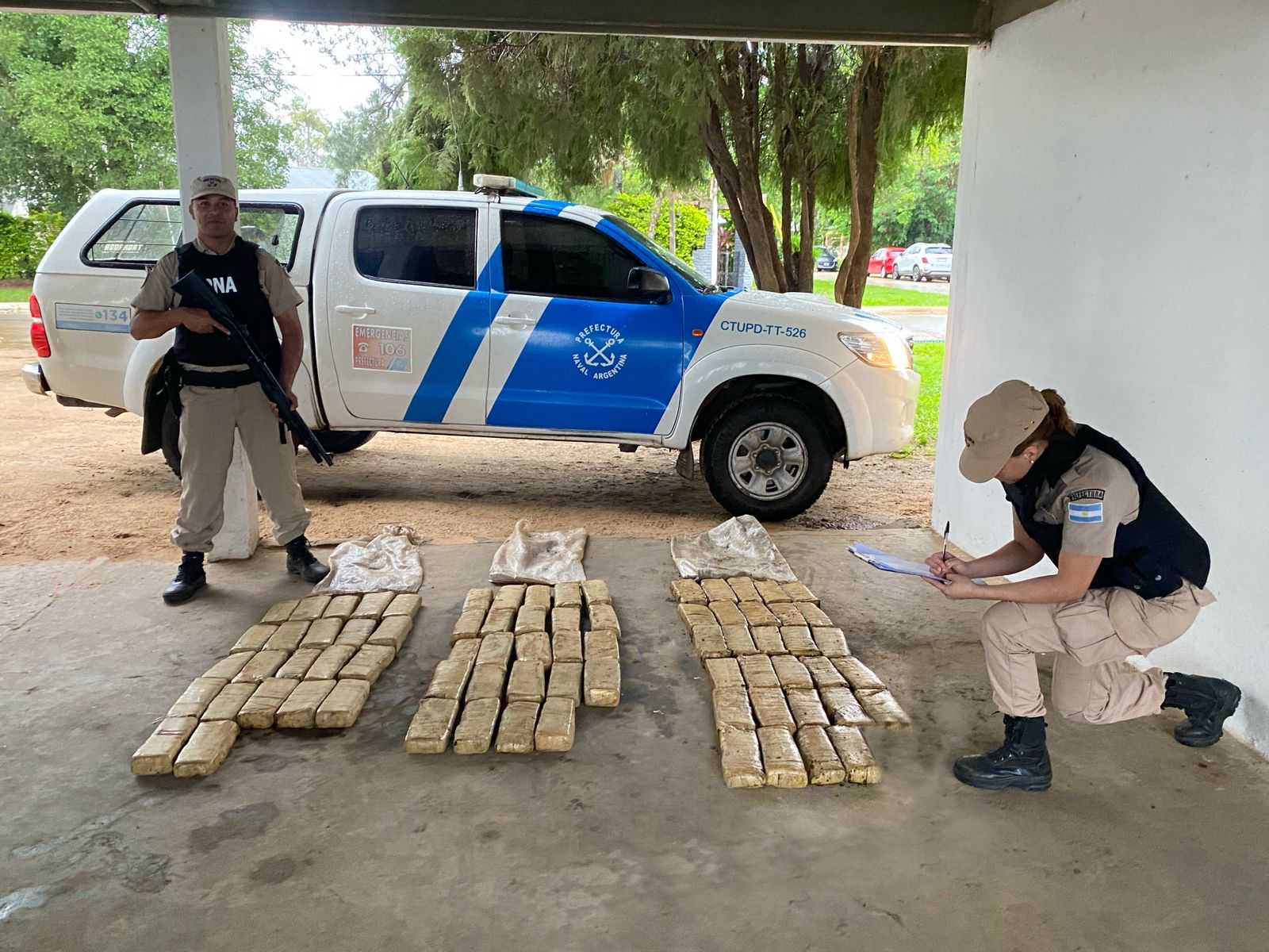Personal de la Prefectura Naval Argentina decomisó un cargamento de casi 100 kilos de marihuana, en un operativo realizado en Paso de la Patria, Corrientes.